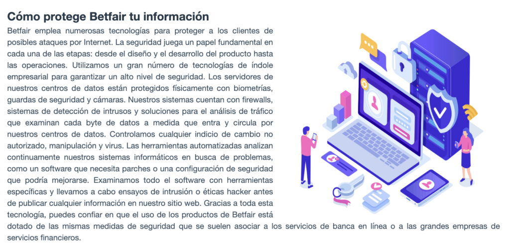✅ Consulta los términos de seguridad: en la sección de seguridad del sitio web del casino, debería explicarse qué tipo de protección de datos utilizan. Nosotros hicimos la prueba con betfair Casino y esto es lo que encontramos: