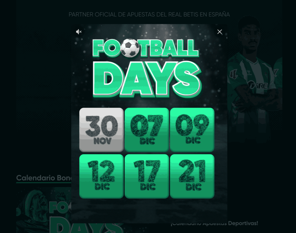 Una de las primeras promociones que he encontrado es el calendario ha preparado SpeedyBet. La casa de apuestas patrocinadora oficial del Betis, nos promete 6 días de sorpresas durante noviembre y diciembre. ¿Creéis que tendrán apuestas gratuitas para nuevos clientes? Permaneceremos atentos a ver sus diferentes promos por día.